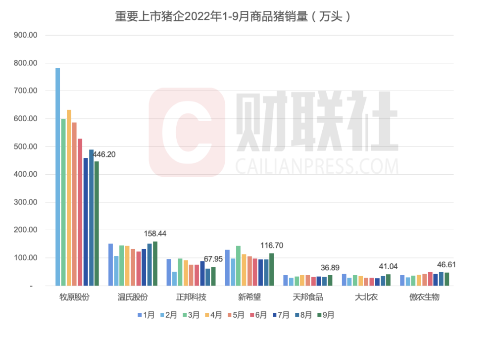 值得一提的是,9月牧原股份和傲农生物(603363.SH)出栏量环比有所减少,分别为446.2万头、46.61万头,环比下降8.7%、3.64%,其中牧原股份9月出栏量几乎创年后新低。