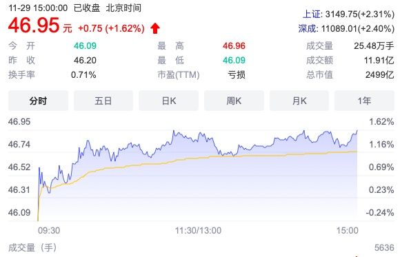 ▲牧原股份29日收报46.95元/股,总市值2499亿元