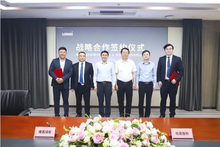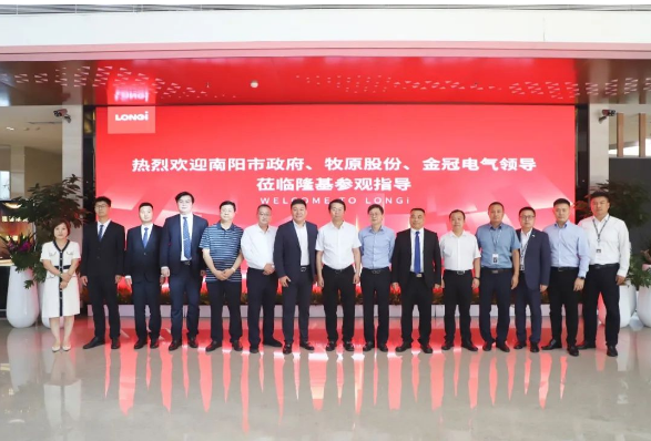 6月25日,南阳市政府副市长杨曙光、?新区管委会主任党俊伟、牧原股份常务副总裁曹治年、金冠电气董事长樊崇等一行领导到访隆基考察。隆基绿能董事长钟宝申、隆基绿能分布式事业群副总裁蒋东宇、隆基绿能中国政企地区部总裁陈鹏飞、隆基绿能中国政企地区部副总裁侯体华等陪同考察。隆基绿能与牧原股份签署战略合作协议。双方将本着优势互补、互利共赢、共同发展原则,建立战略合作关系,推动企业绿色能源转型再上新台阶。