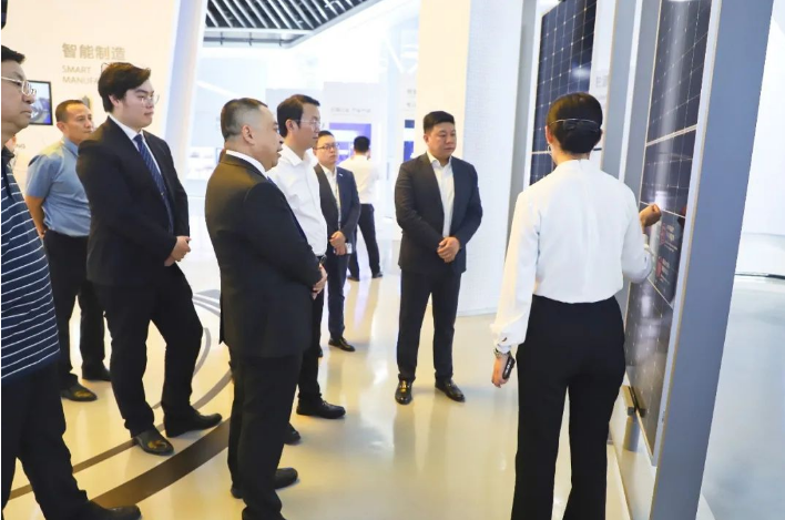与会嘉宾先后参观了隆基绿能智慧能源展馆、BIPV体验馆、光伏车棚,详细了解隆基全产业链发展和建筑光伏一体化领域相关情况,对隆基在技术上的持续创新和助力企业绿色能源转型等方面取得的成就给予高度的肯定。