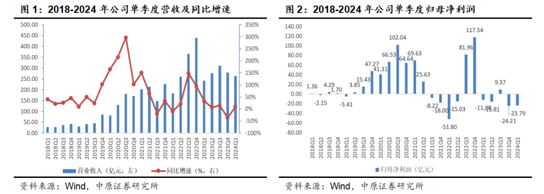 公司2023年业绩承压,2024Q1营收维持同比增长。根据公司公告,2023年实现总营收1108.61亿元,同比-11.19%;归母净利润亏损42.63亿元,同比由盈转亏;扣非后归母净利润40.26亿元,同比由盈转亏。2024Q1公司营收262.72亿元,同比+8.57%;归母净利润亏损23.79亿元,同比增亏11.81亿元,环比减亏0.42亿元。受到生猪出栏量和猪肉产量明显增加,2023年全年生猪价格低位运行,养殖户陷入深度亏损,导致公司业绩同比下降。