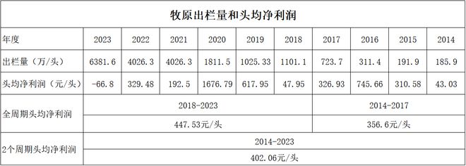 考虑到历年猪价波动较大,不宜以过去一年或几年进行线性外推去计算每头猪的的盈利水平。但综合过去两个完整猪周期,去计算头均盈利水平来作为未来盈利假设基础,具备一定合理性。