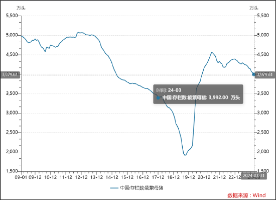 由于各大猪企扩产,这次周期似乎显得较长。值得注意的是,从供给端来看,农业农村部3月1日宣布将全国能繁母猪保有量从4100万头调整为3900万头。根据农业农村部监测,2024年一季度末能繁母猪存栏3992万头,季度环比下降3.6%,季度同比下降7.3%。需要指出的是,截至3月,虽然能繁母猪存栏连续9个月下降,但相关去化速度并未出现猪瘟时期的趋势,趋势相对较缓。牧原短期债务能否等到猪周期景气度上行,这或值得投资者高度关注。