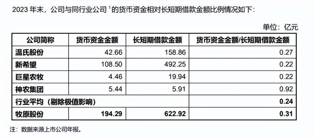 其次,牧原股份的发展基础其实较为坚实。根据牧原股份披露的年报问询函回复,截至2023年底,公司目前持有的货币资金达到194.29亿元,其中银行存款占据大头,达到136.79亿元;融资方面,公司未使用银行授信额度为270.59亿元、储备的未使用债券批文额度合计80亿元。