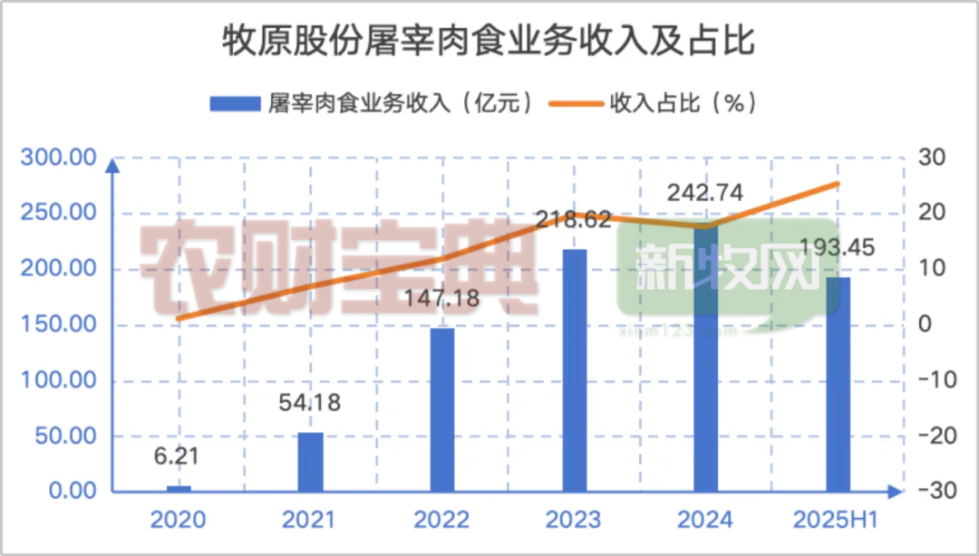2025年上半年,牧原屠宰与肉食业务实现营收193.45亿元,同比增长93.83%,收入占比25.3%;屠宰生猪1141.48万头,同比增加110.87%,产能利用率78.72%。