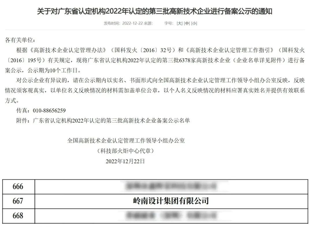 新年伊始,捷报传来岭南股份旗下岭南设计集团成功获批“国家高新技术企业”,这是岭南股份第7家通过国家高新技术企业认定的单位,亦是岭南设计集团继12月晋升城乡规划编制甲级资质成为城乡规划与风景园林”双甲”设计单位的又一重大喜讯,标志着岭南设计迈向设计领域的新高度。