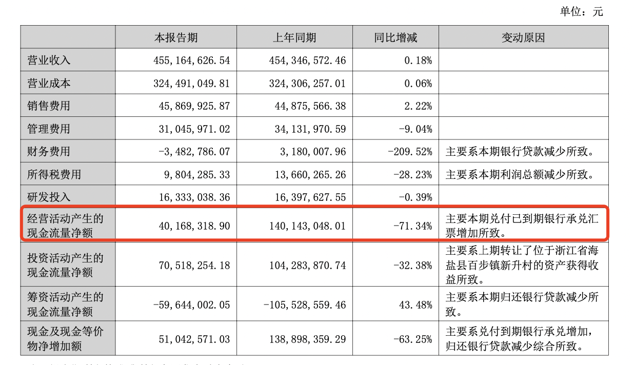 值得注意的是,公司的经营活动产生的现金流量净额为4016.83万元,同比下降71.34%。