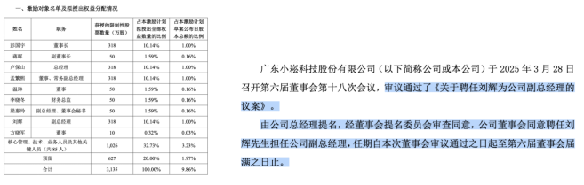 值得注意的是,除常务副总经理孟繁熙之外,其余3名高管在小崧股份任职时间均不超过6年。其中,刘辉于2025年3月28日担任公司副总经理的职位,任职时间尚不足三个月,而刘辉此前并未在公司担任其他职务。