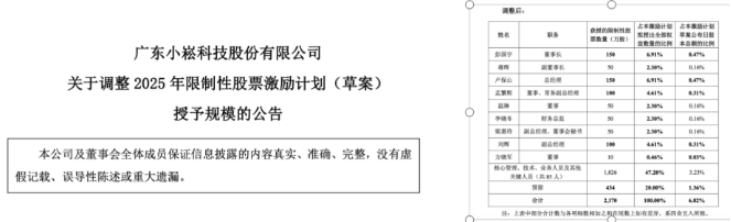 注意到,在6月9日晚间,小崧股份发布了《关于调整2025年限制性股票激励计划(草案)授予规模的公告》(以下简称调整公告),公司拟将激励对象的限制性股票数量由原计划的3135万股调整为2170万股,约占公司股本总额3.18亿股的6.82%。首次授予的限制性股票数量由2508万股调整为1736万股,预留股数由627万股调整为434万股。