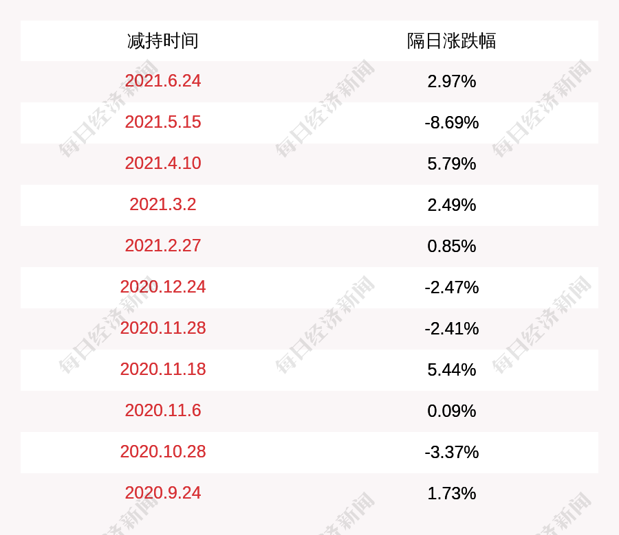 3.龙大肉食上次发布减持公告是2021年06月24日,第二个交易日上涨2.97%,龙大肉食近一年共发布12次减持类公告。