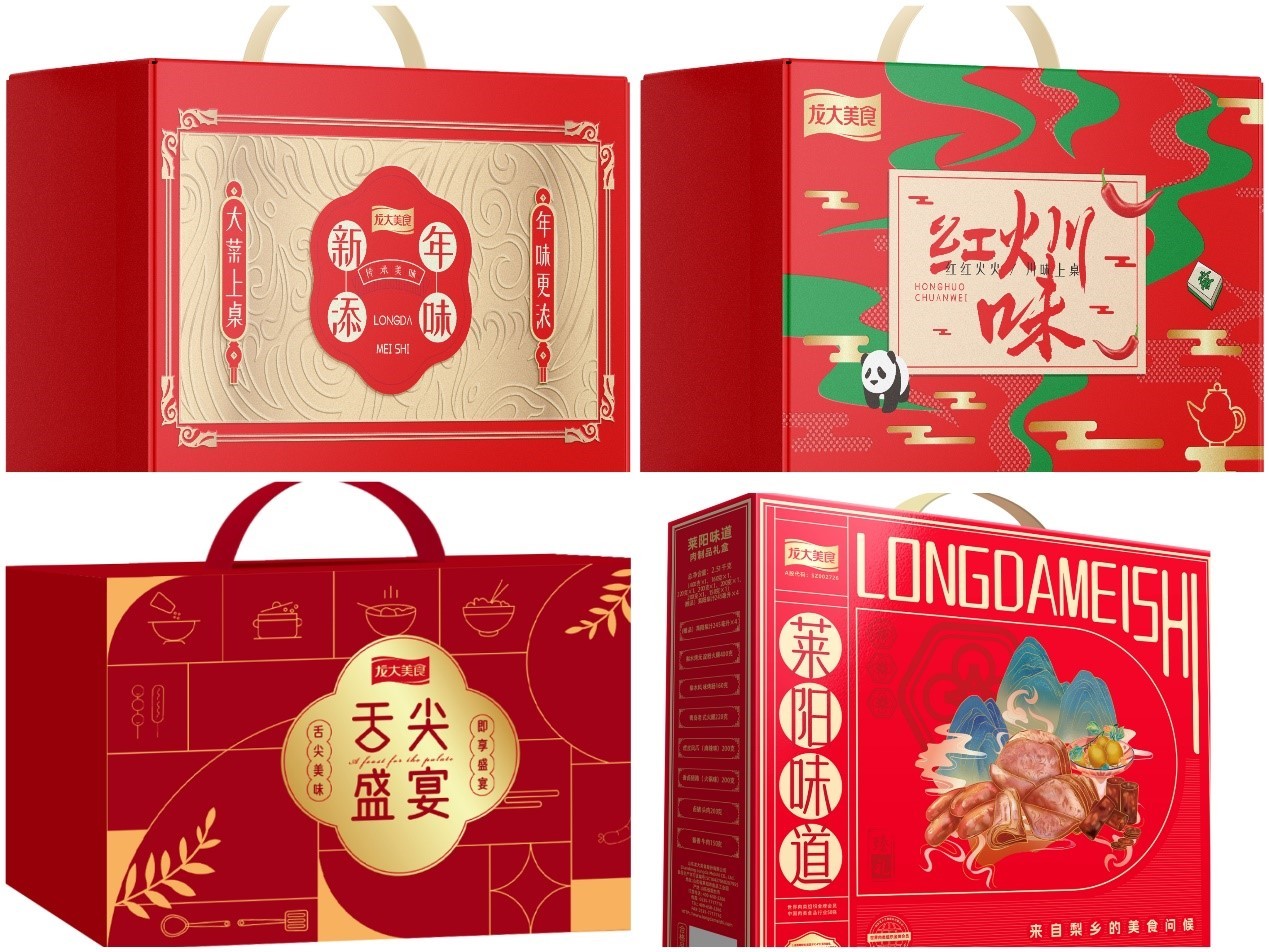 龙大美食龙年春节礼盒在延续高品质基因的同时,从产品搭配到包装设计,都彰显了浓浓的年味。不同颜色的礼盒包装,不同品类的产品搭配,给予消费者多样化的场景选择。同时,龙大美食春节礼盒以莱阳味道、红火川味等不同的礼盒满足区域化口味需求偏好;以酱卤食府、酱香牛肉等特定化口味礼盒满足消费者的个性化需求。