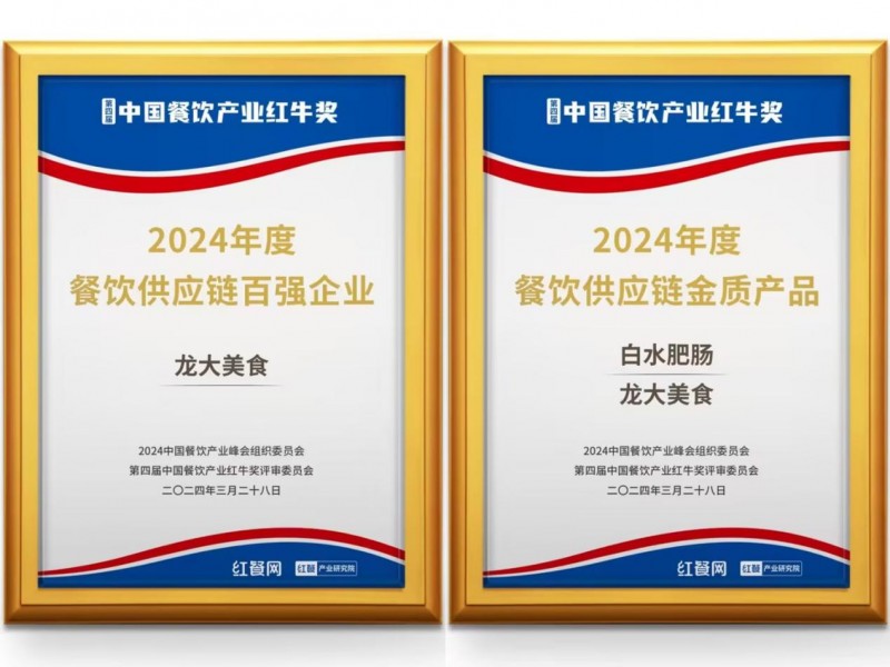 龙大美食携龙大鲜食记拇指肠、梨乡炸肉、德式爆汁烤肠等新品精彩亮相,为广大餐饮链上下游客户和专业观众提供高品质健康饮食解决方案。在同期举办的“第四届中国餐饮产业红牛奖颁奖盛典”上,公司荣获“2024年度餐饮供应链百强企业”殊荣,白水肥肠获得“2024年度餐饮供应链金质产品”奖项,这不仅是对“一体两翼”战略发展方向的认可,也是对公司促进产业高质量发展的一种激励。