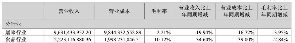 其中,除预制食品业务实现收入19.84 亿元,同比增长 50.94%,其他大部分均亏损。