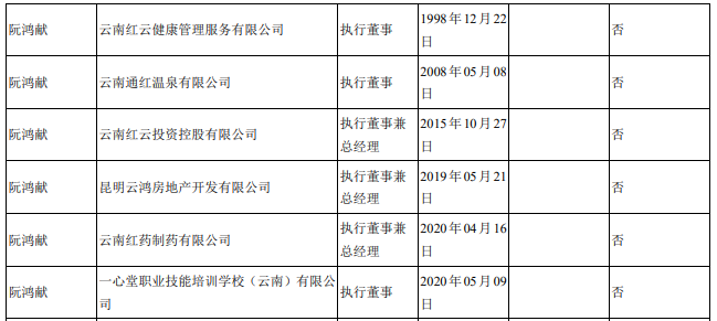 代四顺:在2003年—2011年期间,先后任四川鸿翔一心堂医药连锁、云南鸿翔中药科技、云南鸿云药业、重庆鸿翔一心堂药业4家公司监事职位。