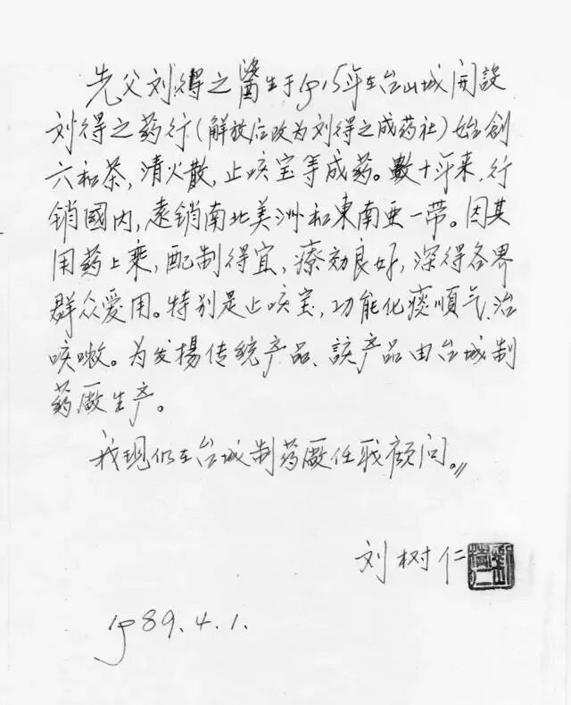 特一止咳宝片原名为“刘得之救命止咳宝”,于1915年由台山中医名家刘得之研发,至今已超过一百年的历史,在民国期间因其功用神奇、收效神速,北伐战争期间曾作为军需用品随军使用。