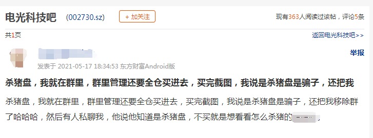 电光科技股价的诡异走势,让股吧的股民们彻底崩溃了……