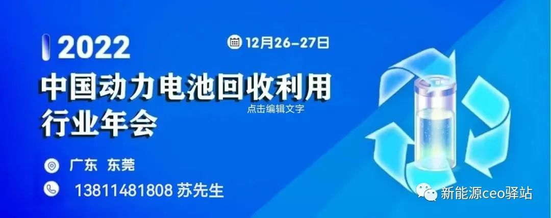 为探索电动汽车和电池低碳发展路径,及时了解最新研究成果和产业发展动态,推动退役动力电池回收利用行业进步,加强行业和产学研交流,由中国电子节能技术协会电池回收利用委员会、中国电池工业网将于2022年12月26-27日联合在东莞曼佧特国际大酒店举办“2022年中国动力电池回收利用行业年会”,诚挚邀请新能源汽车产业链及各界人士参加。