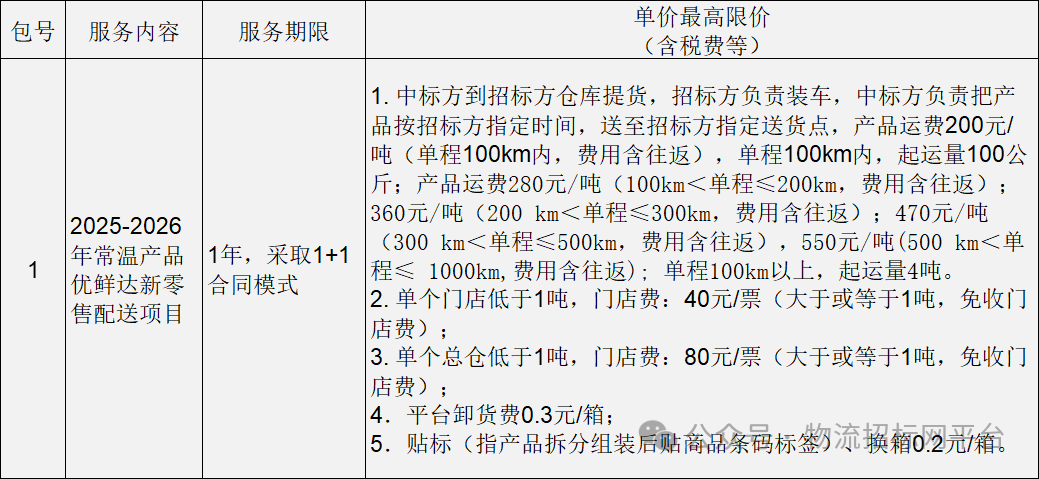 2025-2026年常温产品优鲜达新零售配送项目招标公告