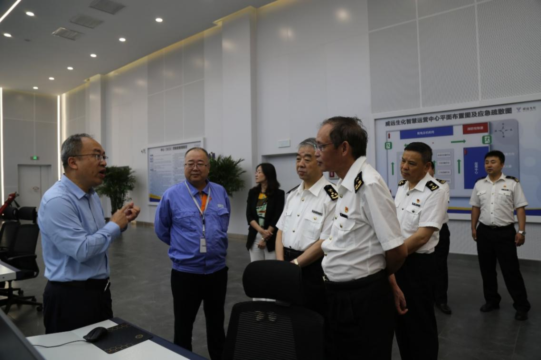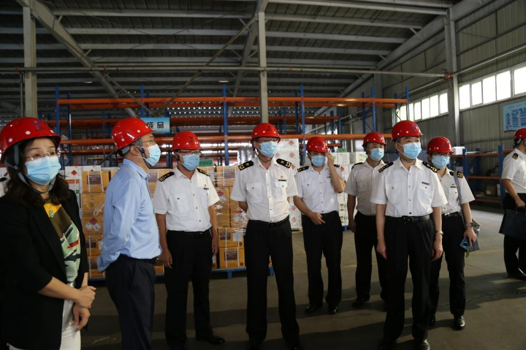 调研中,海关领导一行来到企业智慧运营中心、制剂环保车间、仓库实地调研,详细了解智慧工厂运行状况、企业生产工艺流程,并对安全设备、出口货物进行现场查验。