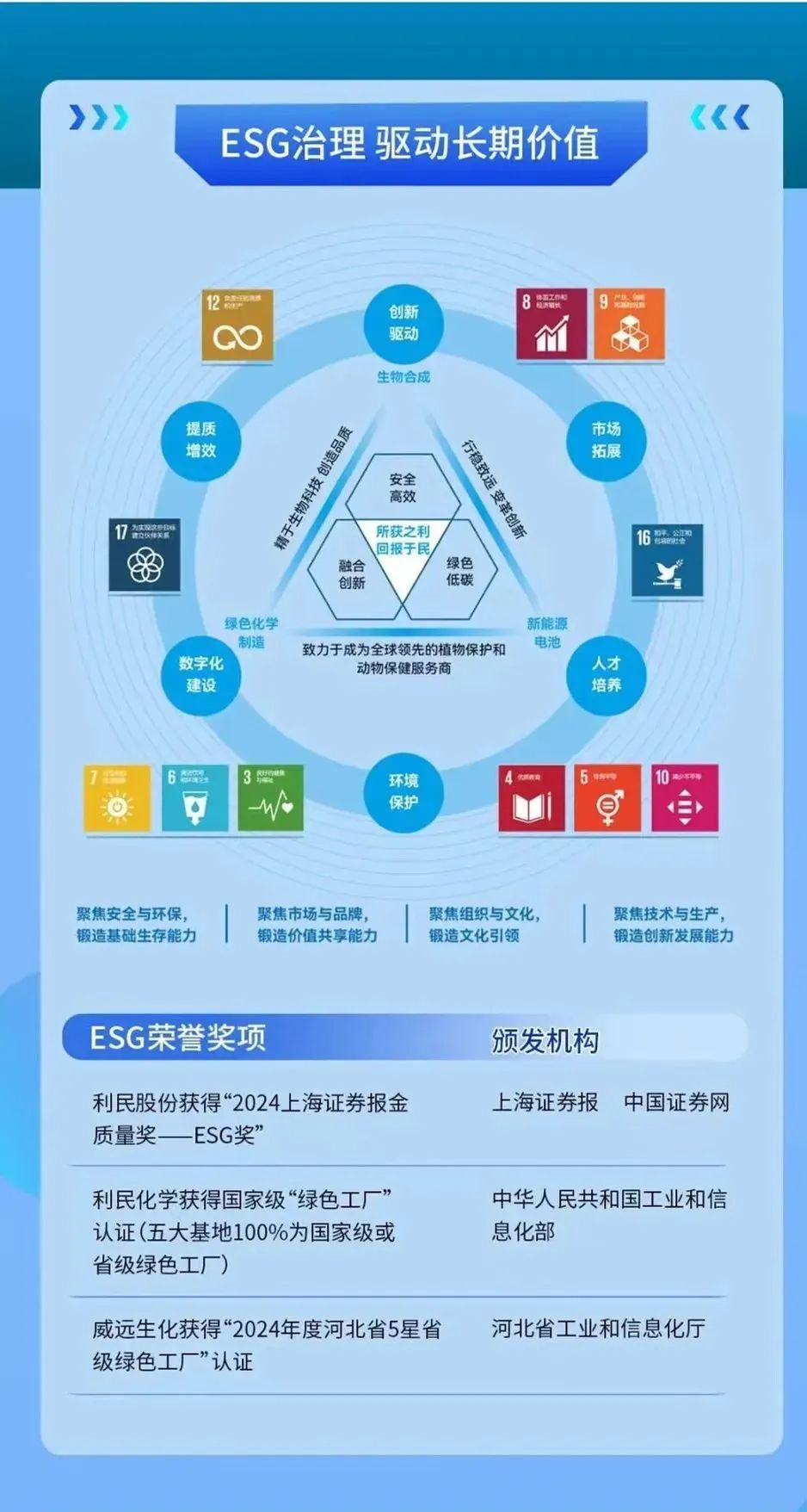 利民股份已连续两年披露ESG 报告,2025 年权威 ESG 评价机构万得(Wind)将利民股份 ESG 评级由 A 级上调至 AA 级,在行业参评的 68 家化工企业中排名跃升至前三位。