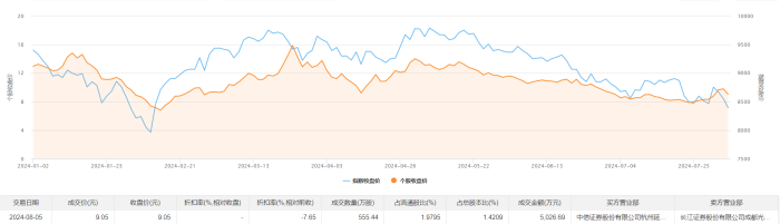 王子新材8月5日大宗交易成交555.44万股,成交额5026.69万元,占当日总成交额的13.69%,成交价9.05元,较市场收盘价9.05元持平。
