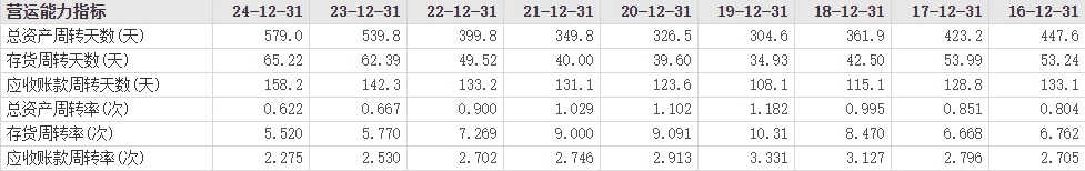 再看它的营运能力指标,总资产周转率自2019年之后,便是一路下降,从1.182下降至0.622,这反映了这几年王子新材销售能力和效率的下降,资产投资效益也不如以前,越来越差。