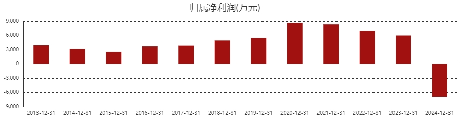 但是,在这么多年连续盈利之后,去年2024年,王子新材却一反常态,净利润暴降213%,亏损超过6000万元。