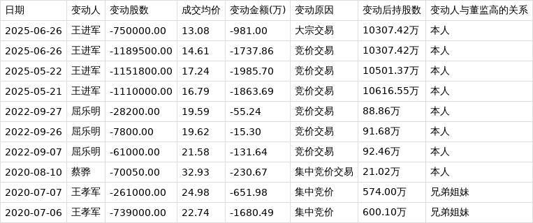 深交所公开信息显示,6月26日,王子新材董事、高管王进军在竞价交易公司股票,减持股数118.95万股,成交均价14.61元,变动金额1737.86万元,变动后持股数为10307.42万股。