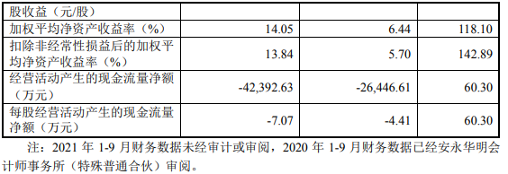业绩来看,今年前三季度,雅创电子营业收入为9.81亿元,同比增长34.83%;归属于母公司所有者的净利润为5497.91万元,同比增长162.44%;经营活动产生的现金流量净额为-4.24亿元,上年同期为-2.64亿元。
