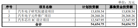 此前披露的招股书显示,雅创电子原拟募资5.47亿元,拟分别用于“汽车电子研究院建设项目”、“汽车电子元件推广项目”、“汽车芯片IC设计项目”。