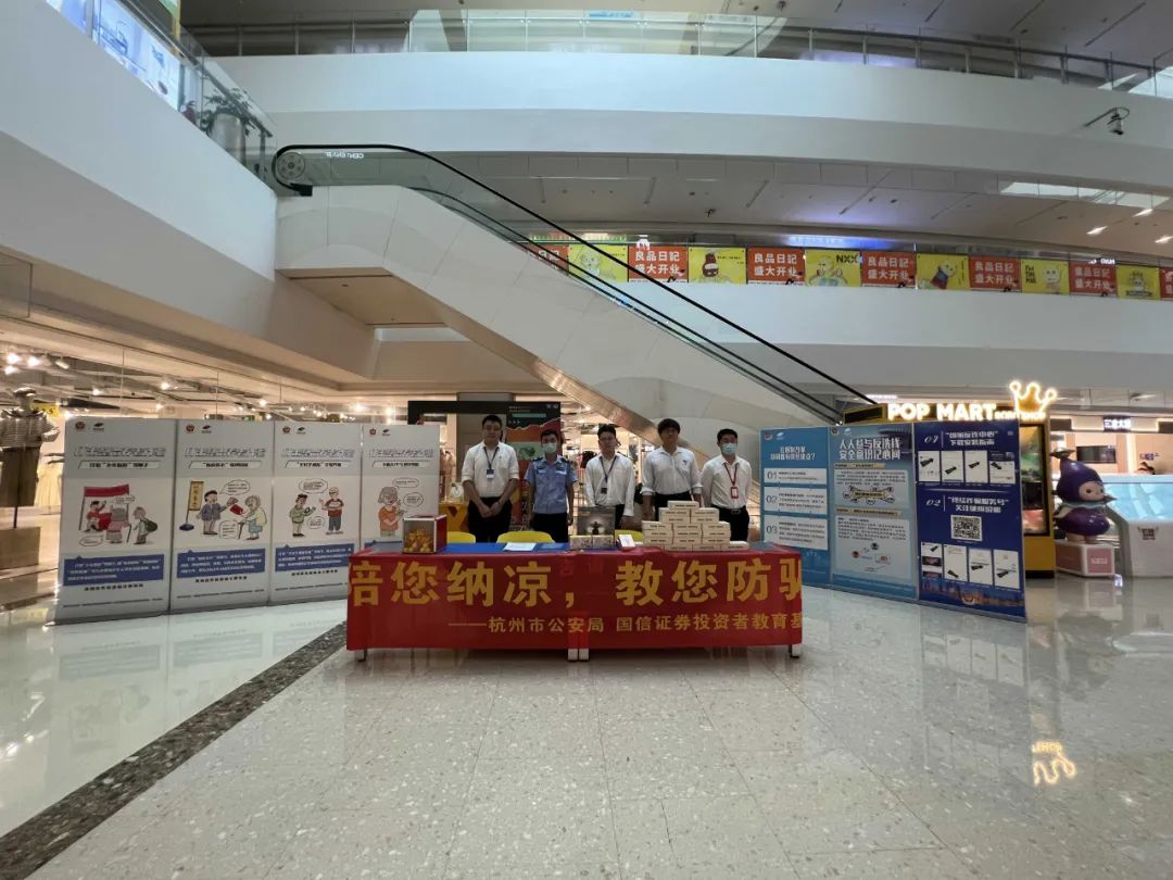 8月18日,国信证券投教基地联合杭州市公安局走进西湖区三墩龙湖紫荆天街,在面积大、人流多的商场广场上设立宣传台、摆放宣传展牌,打造防骗打非的宣传阵地,帮助市民群众尤其是老年人提高防范意识和能力,维护好老年人的合法权益。