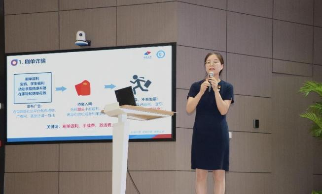 仪式第二项,来自国信证券投教基地的公益讲师祝越进行防骗打非授课活动,针对生活中频发的非法集资和电信网络诈骗手段,向在座听众生动形象地讲解了保护个人资金财产安全的有效方法,并结合自己身边的真实案例,使得大家深有感触。