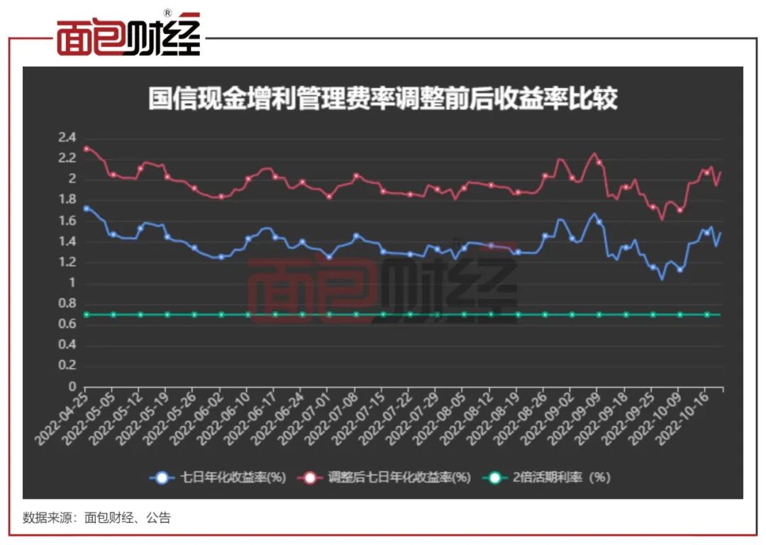 业绩虽差,因基金设置了较低的费率跳转规则,国信现金增利仍可按超过同类2倍以上的管理费率收取费用。