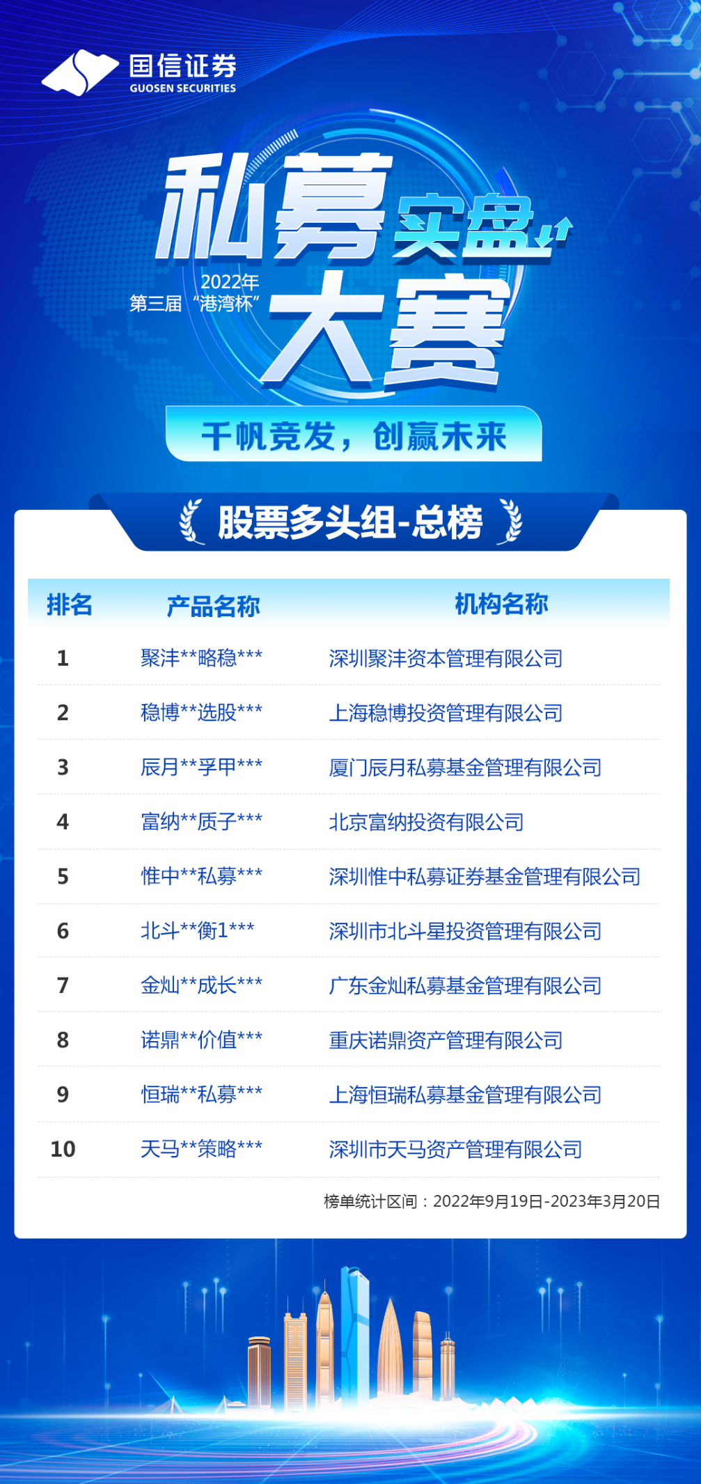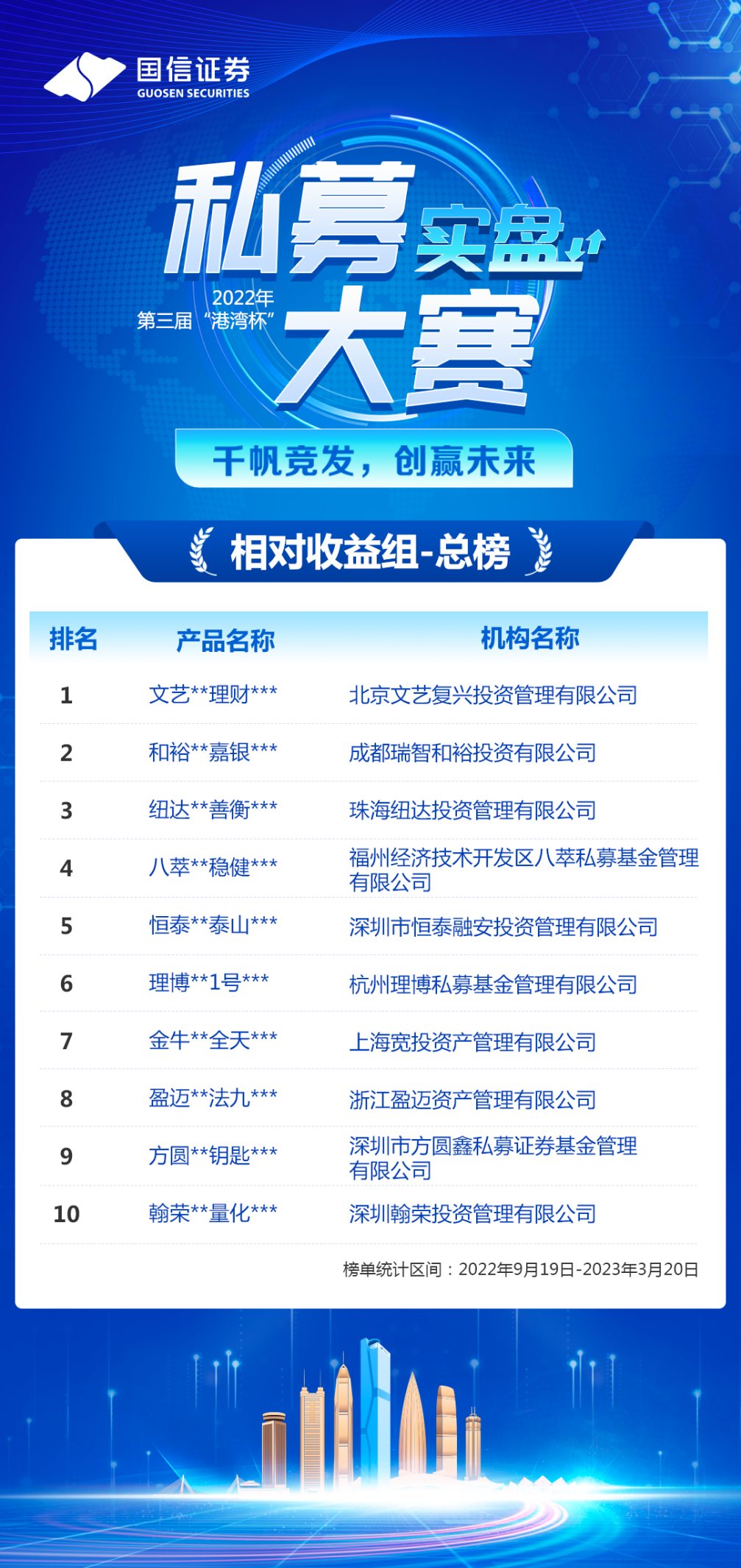 现在,重磅公布第三届国信证券“港湾杯”私募大赛的获奖总榜单:
