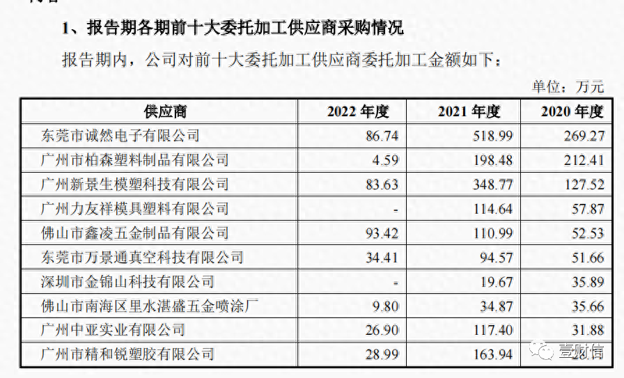 值得注意的是,招股书主要原材料采购及占比情况表披露,报告期内腾龙健康采购的主要原材料为塑胶原料、电子元器件和五金。2021年、2022年,腾龙健康采购五金的金额分别为2,651.33万元和3,264.68万元。