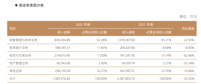 第二大业务投资与交易业务,营收仅27.47亿元,同比下降6成。