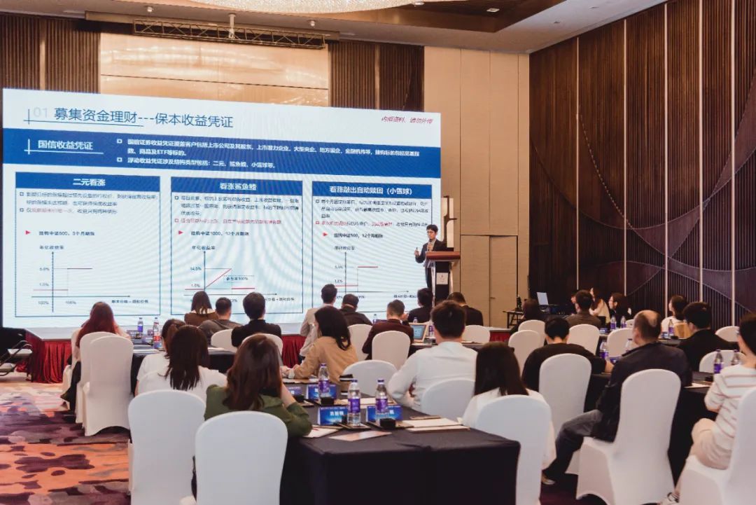 ▲国信证券财富管理与机构事业部机构业务中心胡启星为会场人员做“企明星+综合服务介绍”。他分享道,国信证券以企业客户证券事务管理为核心环节和切入点,应用大数据、人工智能等前沿金融科技成果,为企业客户提供涵盖股权激励全流程管理、特定股东股份交易合规管控、智能算法交易等一站式数字化综合服务,并配套融资服务、市值管理等衍生增值服务,构建企业客户综合服务生态圈。