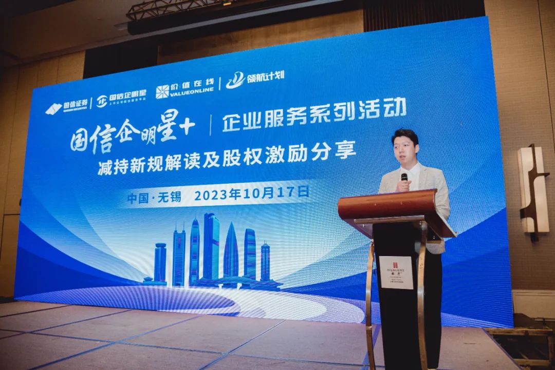为帮助无锡区域上市公司更好掌握减持新规要点以及回购股份用于股权激励及员工持股计划的相关注意事项,10月17日,由价值在线与国信证券苏南分公司共同主办的领航计划之“减持新规解读及股权激励分享”专题培训活动在无锡太湖华邑酒店成功举办!这也是价值在线举办的第四场“领航计划”专题培训活动。