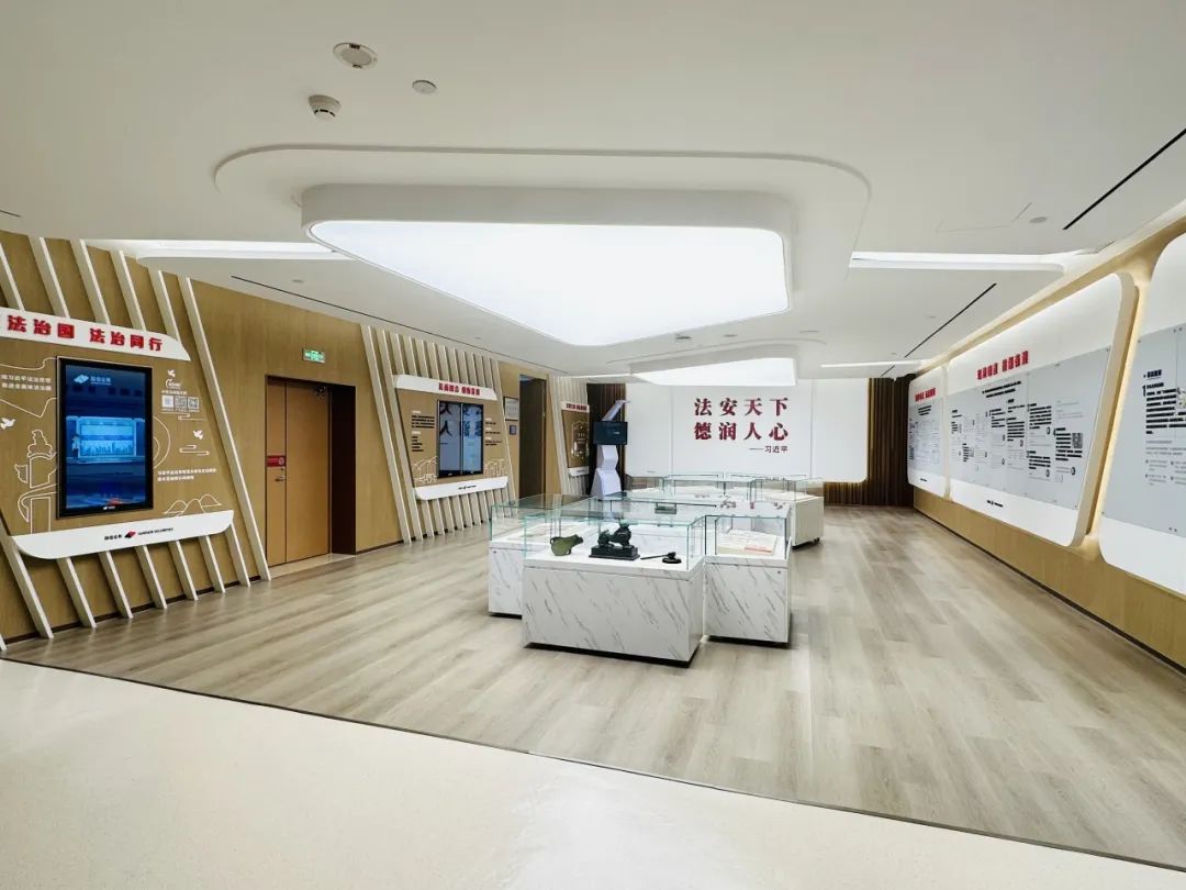 基地位于深圳市福田中心区国信金融大厦裙楼3楼,面积约1890平方米,共设置普法宣传区(含模拟法庭)、法治观影区、法治大讲堂、法律咨询室、法律阅览室等十大功能区域。