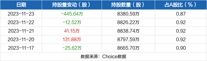 近五日持股量数据