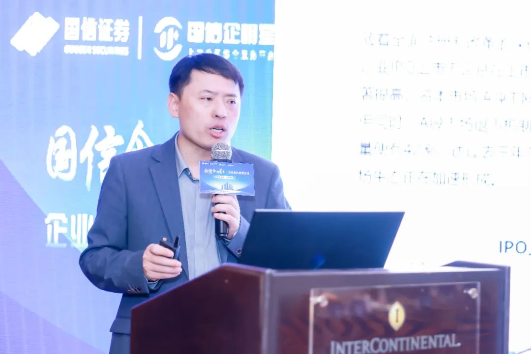 ▲会场伊始,国信证券财富管理与机构事业部机构业务中心衍生品业务负责人杨桂梅为会场人员做“企明星+综合服务介绍”。她分享道,国信证券以企业客户证券事务管理为核心环节和切入点,应用大数据、人工智能等前沿金融科技成果,为企业客户提供涵盖股权激励全流程管理、特定股东股份交易合规管控、智能算法交易等一站式数字化综合服务,并配套融资服务、市值管理等衍生增值服务,构建企业客户综合服务生态圈。