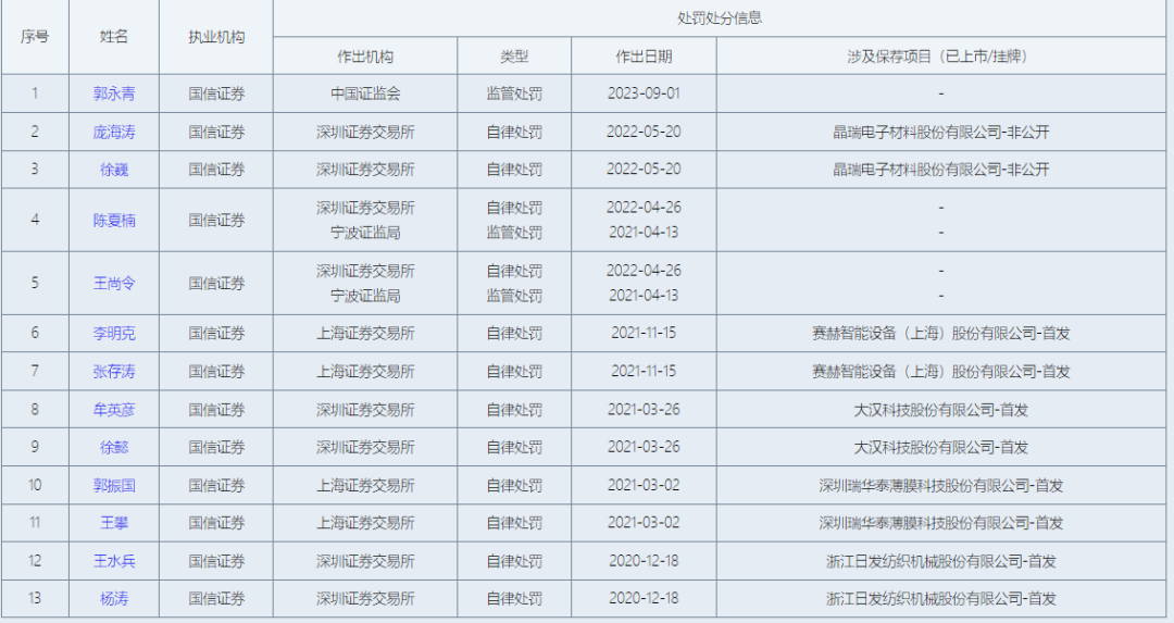 而郭永青女士也是一位资深人士。她早年任职于大鹏证券,2005年登记执业于国信证券,2012年取得保荐代表人资质。或许因为这一监管处罚事项,她进入了中证协C类报道名单。