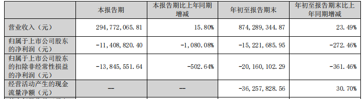 锦鸡股份 (300798.SZ)2025年三季度报告显示,2025年前三季,公司实现营业收入8.74亿元,同比增长23.49%;归属于上市公司股东的净利润-1522.17万元,同比下降272.46%;归属于上市公司股东的扣除非经常性损益的净利润-2016.01万元,同比下降361.46%;经营活动产生的现金流量净额-3625.79万元,同比增长30.70%。