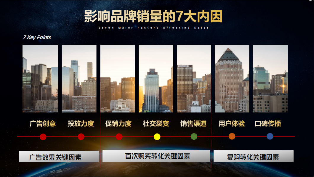 有了成熟的营销体系,我们投广告的原则也就清楚了——广告和创意占关键元素里面49%,创意对品牌效果的贡献要达到49%。也就是说,广告做好了,再把投放频率加上去,效果一定可以起来。同时,第一次客户购买的转化因素也很关键,要把促销力度做起来,这三件事情做好了,品牌效率就会有提升。所有的效率提升之后,就能打造出一个高效的品牌。