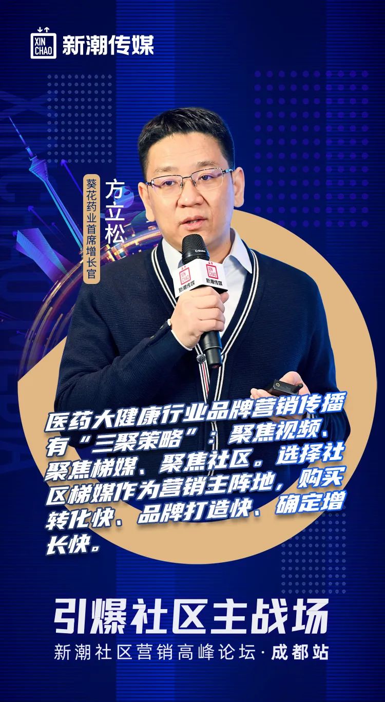 3月28日,新潮传媒主办的“新潮社区营销高峰论坛(成都)站”盛大举行。葵花药业首席增长官方立松在现场分享了《2022家庭消费品牌增长新攻略》,讲述小葵花超级品牌打造模型,解析“三聚策略”如何让小葵花品牌深入人心。