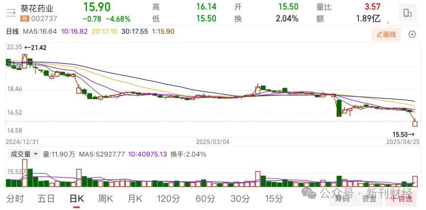 在这份充满矛盾的年报中,管理层反复强调“阶段性”、“战略定力”等概念,而当天资本市场用跳空低开7%、最终收跌4.68%投下了质疑票,这也使得进入2025年以来,葵花药业的股票累计下跌已达到22.40%。