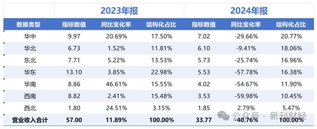 从区域角度看营收,葵花药业业务遍布全国,七个区域业绩相对均衡,但2024年各个区域市场的销售数据几乎是全面沦陷。2023年占比最大的华东市场收入从13.10亿元暴跌至5.53亿元,同比下降57.78%,拱手让出第一把的宝座;华中市场收入7.02亿元,跌幅也达到了29.66%,但仍升至榜首;七大区域唯一录得增长的只有体量最小、排名最后的西北。这种几乎全域性的大幅下滑,显然无法简单归咎于行业周期,产品的市场竞争力和公司的销售策略都受到了前所未有的挑战。