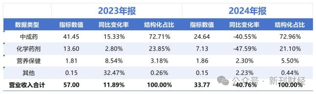 从产品结构来看,中成药作为公司的核心业务,2024年实现收入24.64亿元,同比下滑40.55%,占总营收的72.96%。化药表现更为疲软,收入7.13亿元,同比下滑47.59%,占总营收的21.10%。只有营养保健板块逆势增长,营收达到1.86亿元,同比增长2.30%,占比从上一年的3.18%提升至5.50%。这一变化表明,中药、化药这两大类传统优势产品面临着较大的市场压力,只有新兴的营养保健品及其他业务尚能保持稳中有升,但其规模相对较小,合计不足10%,尚不足支撑整体营收水平。