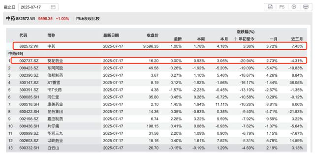 从二级市场表现来看,葵花药业的股价走势与行业整体趋势形成鲜明反差。截至7月17日,公司股价年内累计跌幅已超20%,在同期万得中药行业指数整体上涨3.36%的背景下,其跌幅在行业内位居榜首,成为板块中表现最为疲弱的标的之一。