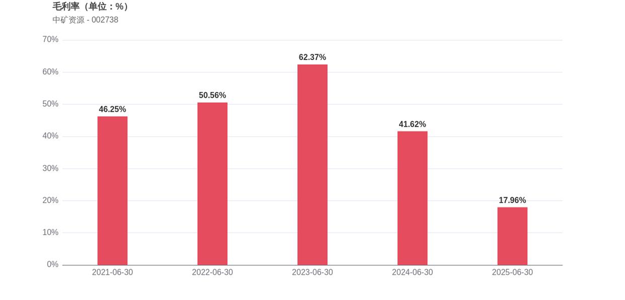 在2025年上半年,中矿资源的经营业绩呈现增收不增利的态势,营业收入增长34.89%至32.67亿元,但归母净利润大幅下滑81.16%至0.89亿元。引人关注的是,公司二季度出现亏损0.46亿元,环比一季度大幅恶化133.87%。